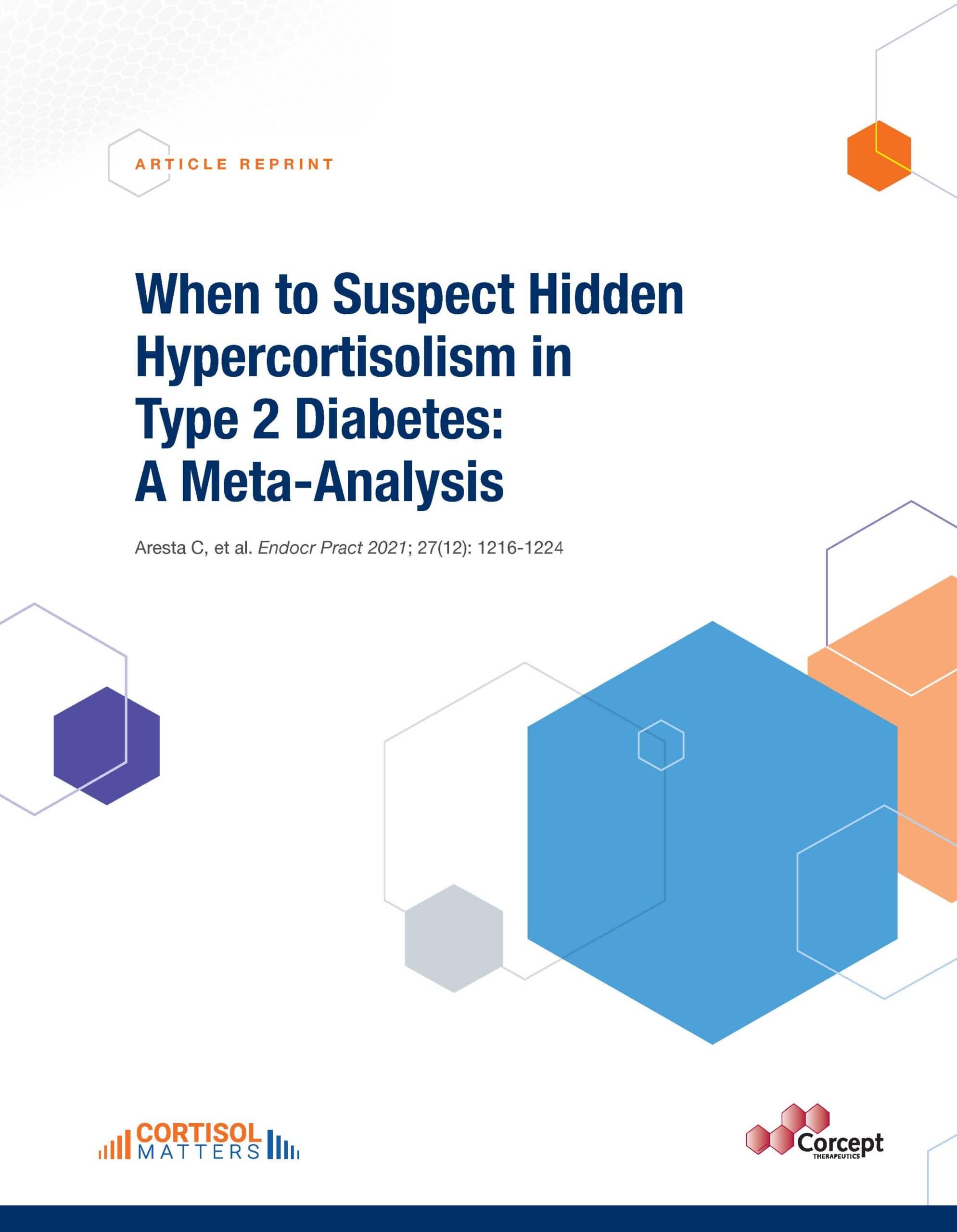 Provides important key prevalence and risk take aways available in DSE-00932 JUN 2022, the Aresta Reprint “When to Suspect Hidden Hypercortisolism in Type 2 Diabetes: A Meta-Analysis”. A copy of DSE-00932 JUN 2022, the Aresta Reprint, will be provided within each carrier