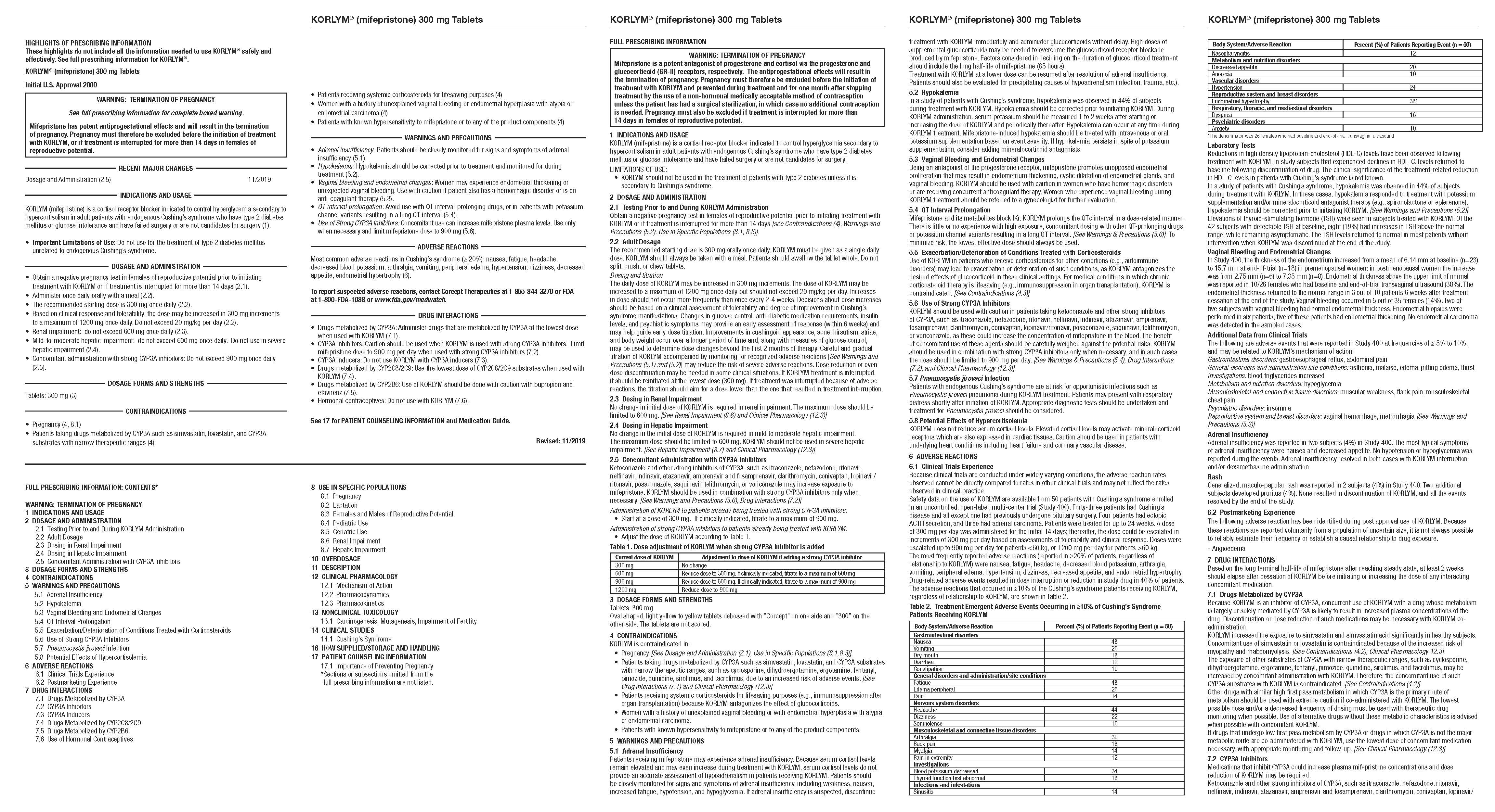 Print Version of the Korlym Prescribing Information and Medication Guide. All previous versions of K-00014 NOV 2019 must be destroyed and replaced with K-00014 SEP 2024.